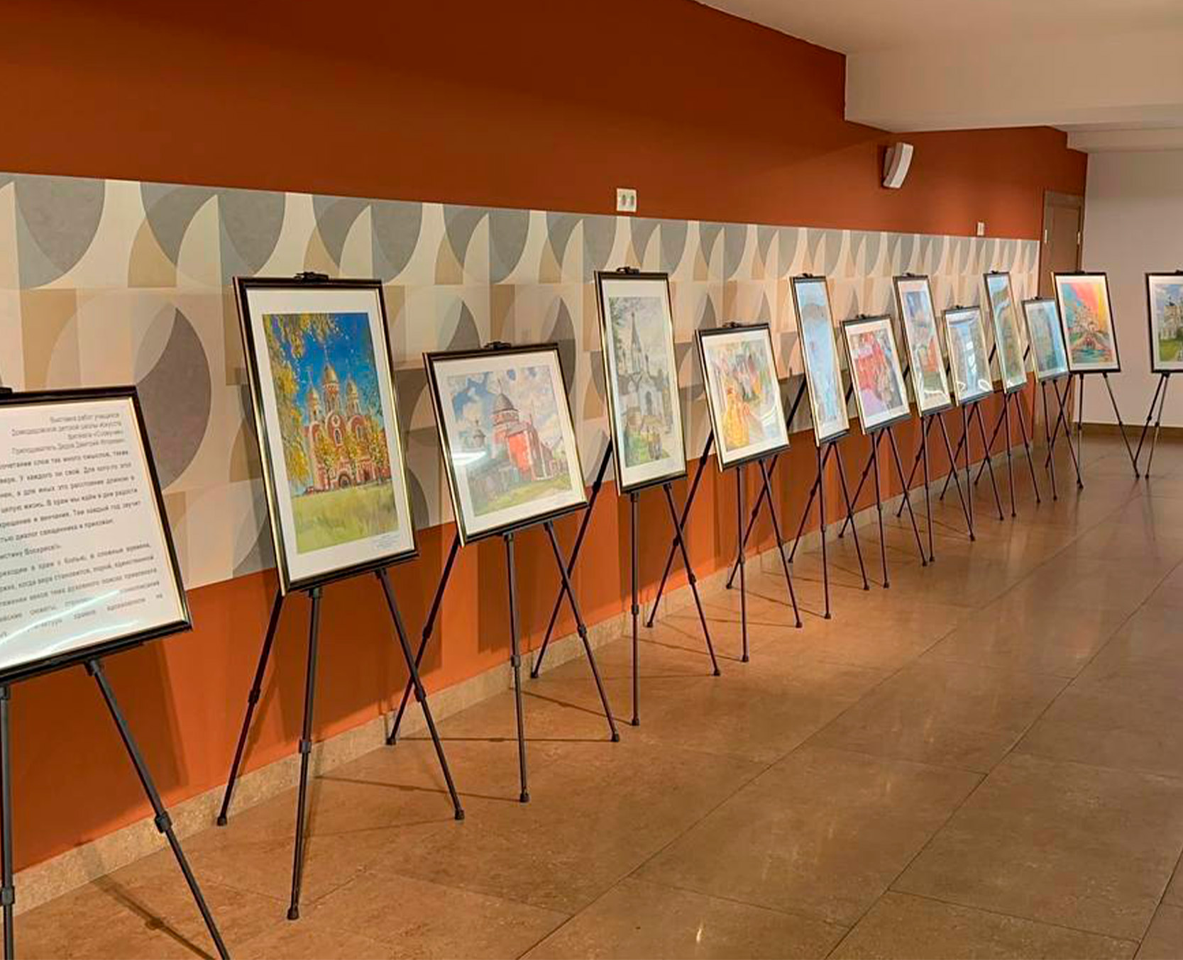 Экспозиция включает в себя 13 картин с изображениями храмов городского округа Домодедово. Все работы созданы учениками филиала «Созвучие» Домодедовской детской школы искусств.