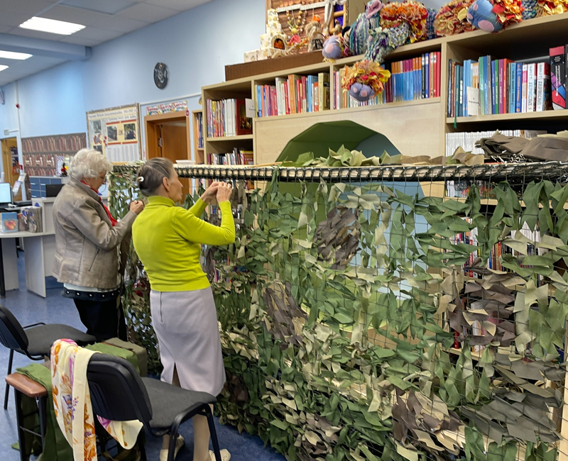 В библиотеке № 5 микрорайона Белые Столбы продолжаются мастер-классы по плетению маскировочных сетей и нарезанию лент для них.