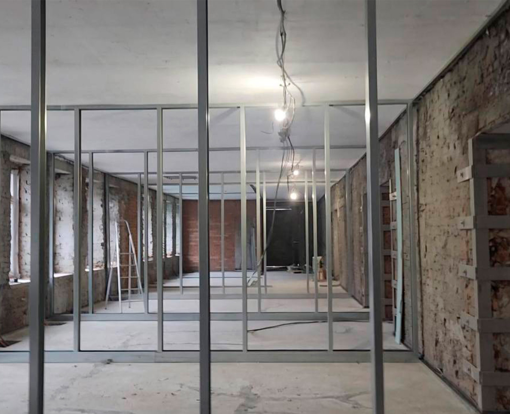 Сейчас на первом этаже уже завершён монтаж профилей в процедурных кабинетах.